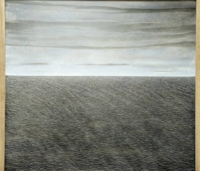 In the monochrome landscape paintings of Belgian artist Louis Blondiau, the positive energy and harmony of nature take centre stage. His work is influenced by traditional Asian painting and Taoism. His serene seascapes in particular radiate an extraordinary sense of calm. Yet Blondiau succeeds in conveying movement within the waves through his distinctive painting technique. The countless scratches in the paint form a unique combination of engraving and oil painting.