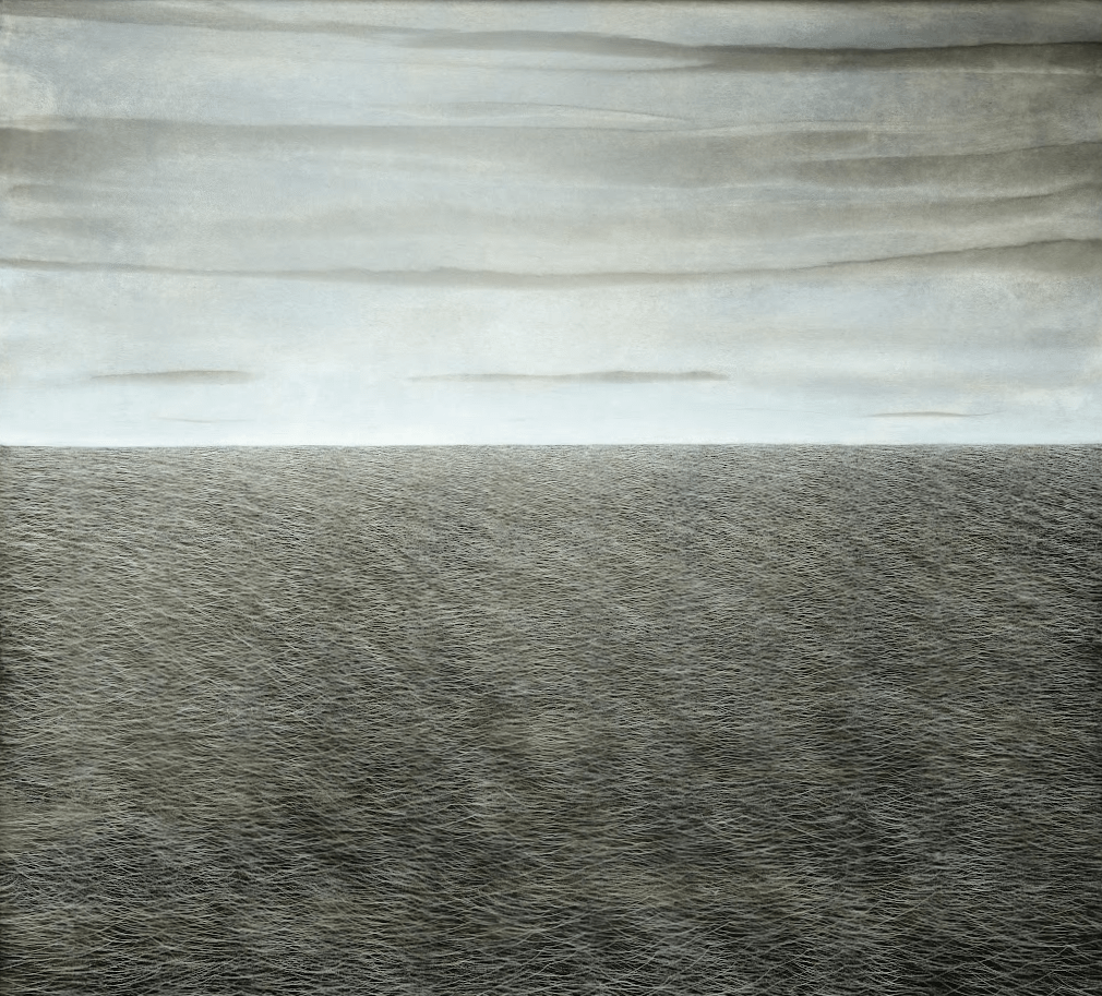In the monochrome landscape paintings of Belgian artist Louis Blondiau, the positive energy and harmony of nature take centre stage. His work is influenced by traditional Asian painting and Taoism. His serene seascapes in particular radiate an extraordinary sense of calm. Yet Blondiau succeeds in conveying movement within the waves through his distinctive painting technique. The countless scratches in the paint form a unique combination of engraving and oil painting.