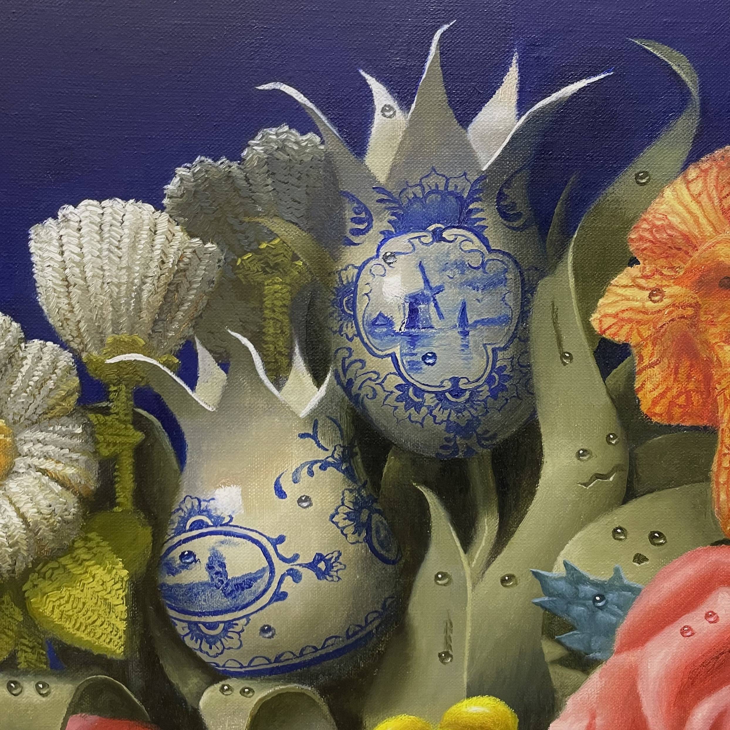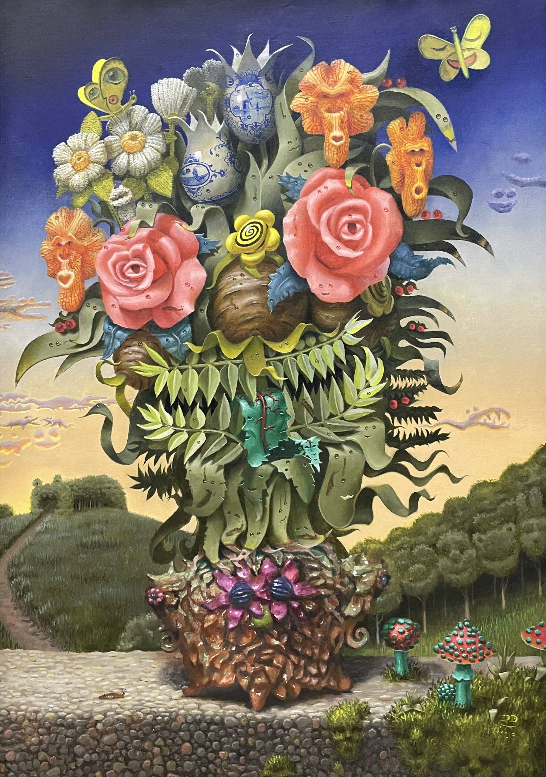 Daniel Douglas (born 1984, Dedemsvaart) grew up in the Dutch countryside, surrounded by the low horizons and dramatic skies once immortalized by the 17th‑century masters. From an early age he knew he wanted to become a painter. After a preparatory year at art school, he apprenticed with Maarten Welbergen, where he learned the fundamentals of oil painting and proportion. He then continued his studies at the Florence Academy of Art in Italy, where he immersed himself in classical drawing and painting techniques and refined his powers of observation. Douglas’ work is predominantly realistic, encompassing landscapes, still lifes, and portraits in which light and nature play a central role. In addition, he explores the phenomenon of pareidolia: the human tendency to perceive faces or figures in random forms. In these works, imagination and reality merge, and the art‑historical tradition is brought vividly back to life in a surprising way.