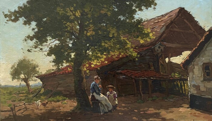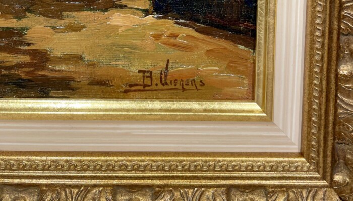 Ben Viegers (1886–1947) was een veelzijdige Nederlandse schilder die zijn wortels had in de Haagse School, maar zich ontwikkelde tot een kleurrijk impressionist met een eigen signatuur. Zijn werk kenmerkt zich door een levendig palet met kleuren als oranje, zeegroen en kobaltblauw, en een lichte, losse toets die het licht en de atmosfeer van het moment vastlegt. Hoewel hij vooral bekendstaat om zijn Veluwse landschappen en boereninterieurs, schilderde hij ook stads- en strandgezichten, waaronder het schilderij van een Schevenings straatje dat u hier kunt bewonderen. Viegers werd geboren in Den Haag en kreeg zijn eerste schilderlessen van zijn grootvader. Later studeerde hij aan de Academie van Beeldende Kunsten in Den Haag, waar hij onder invloed stond van zijn leermeester Charles Dankmeijer. In 1921 werd hij lid van de Haagse Kunstkring en exposeerde hij in binnen- en buitenland, onder andere in Antwerpen en Batavia (nu Jakarta). Hoewel Viegers in zijn latere jaren op de Veluwe woonde, bleef hij het kustleven van Scheveningen waarderen. Zijn schilderij van het Scheveningse straatje toont zijn vermogen om het karakter van de stad vast te leggen met een frisse en levendige benadering. Het werk weerspiegelt zijn liefde voor het Nederlandse landschap en zijn talent om de essentie van het moment te vangen in kleur en licht. Dit schilderij is een prachtig voorbeeld van Viegers’ veelzijdigheid en zijn vermogen om verschillende aspecten van het Nederlandse leven en landschap te portretteren. Het biedt een unieke blik op Scheveningen in de vroege 20e eeuw, gezien door de ogen van een meester van het impressionisme.