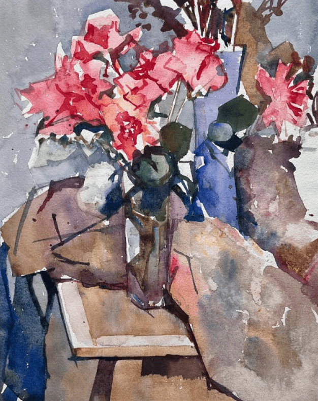 Renée Stotijn – Vaas met roze en blauwe bloemen