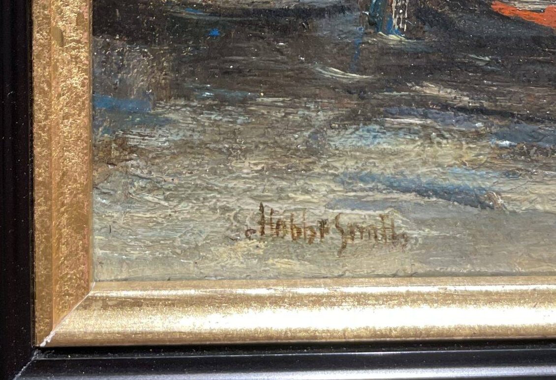 Het bijzondere schildertalent van Hobbe Smith (Witmarsum 1862 – 1942 Amsterdam) werd onderschreven door een vermogende beschermheer, die hem samen met een Koninklijke Beurs, in staat stelde om een opleiding te volgen aan de Rijksakademie voor Beeldende Kunsten in Amsterdam. Daar kreeg hij onder meer les van hoogleraar August Allebé. Hierna studeerde Smith aan de Koninklijke Academie voor Schone Kunsten van Antwerpen, waar hij werd onderwezen door de beroemde schilder Charles Verlat. Het oeuvre van Smith is zeer divers en bestaat voornamelijk uit zee- en stadsgezichten, figuurstukken, naakten en Hollandse landschappen. Maar ook stillevens, portretten, historiestukken, binnenhuizen en molens waren onderwerpen waar Smith zich mee bezighield en met een losse impressionistische toets op het doek zette. In 1917 werd zijn werk bekroond met een gouden medaille, die hij kreeg uitgereikt door koningin Wilhelmina. Smith was lid bij diverse kunstenaarsverenigingen, waaronder Pulchri Studio in Den Haag, Arti et Amicitiae en de Kunstenaarsvereniging Sint Lucas te Amsterdam. Werk van Hobbe Smith bevindt zich onder andere in het Rijksmuseum Twenthe, het Drents Museum en het Fries Scheepvaart Museum.
