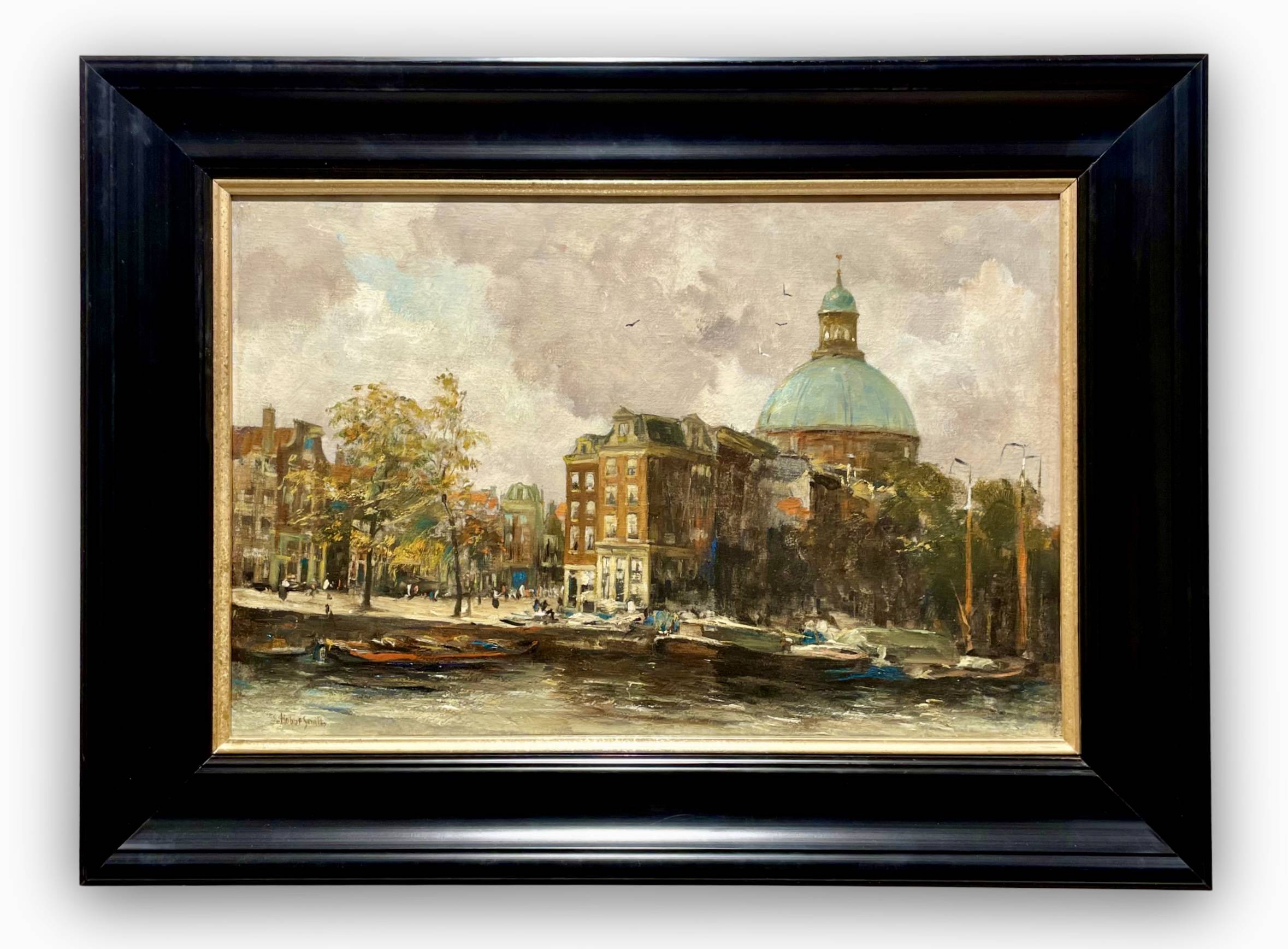 Gesigneerd l.o. (gestempeld met het adres van de kunstenaar op het spieraam)
